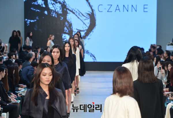 브랜드 '시지엔 이(C-ZANN E)'가 18일 오전 남산 제이그랜하우스에서 진행된 '패션코드(Fashion KODE) 2017 S/S' 오프닝 기념식에서 패션쇼를 선보이고 있다.