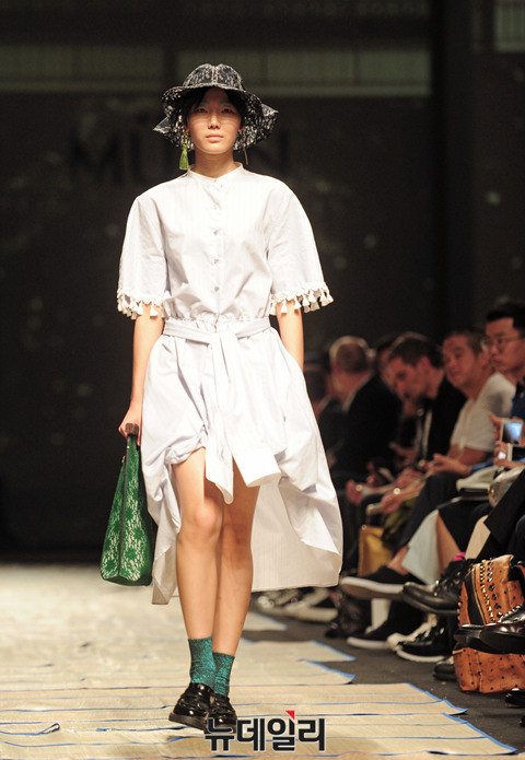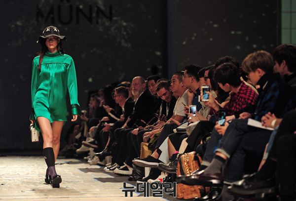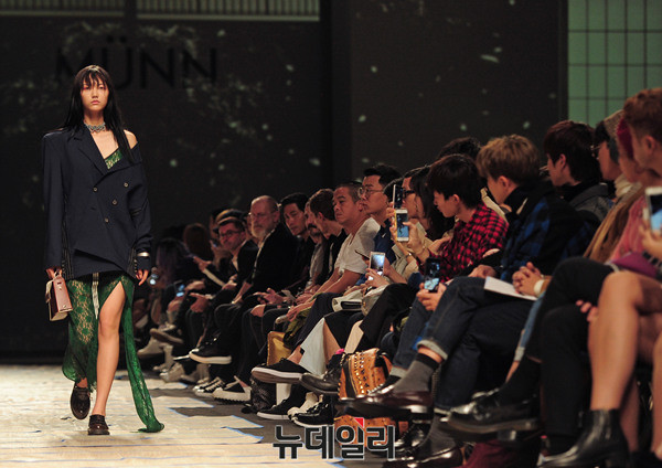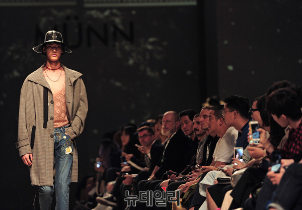 한현민 디자이너의 패션 브랜드 '뮌(MUNN)'이 19일 오전 서울 동대문디자인플라자(DDP)에서 열린 '2017 봄/여름 헤라서울패션위크(HERA Seoul Fashion Week)'에 참가해 런웨이를 펼치고 있다.