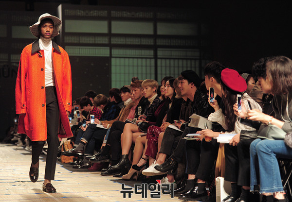 한현민 디자이너의 패션 브랜드 '뮌(MUNN)'이 19일 오전 서울 동대문디자인플라자(DDP)에서 열린 '2017 봄/여름 헤라서울패션위크(HERA Seoul Fashion Week)'에 참가해 런웨이를 펼치고 있다.