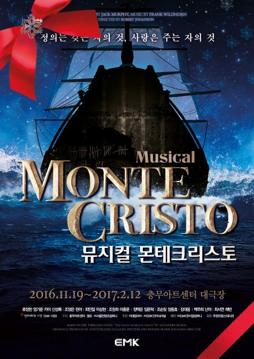 뮤지컬 '몬테크리스토' 크리스마스 시즌 공연 티켓이 오는 25일부터 판매된다.EMK뮤지컬컴퍼니(이하 EMK)는 공연계 최고의 성수기라 할 수 있는 연말 티켓을 판매하기에 앞서 크리스마스 시즌 티켓을 오픈하고, 12월 23~25일 공연 회차에 한해 크리스마스 VIP 패키지 상품을 한정 판매한다고 밝혔다.이번 크리스마스 VIP 패키지는 시즌 공연 회차마다 단 16개 좌석에 한정되며, 패키지 상품은 VIP석 티켓 2장, 프로그램북 1권, '몬테크리스토' OST(2010) 1장, 메이크업 포에버 화장품으로 구성된다.또, 크리스마스 시즌 티켓 관람객 전원에게 '몬테크리스토' 출연 배우의 메시지가 담긴 크리스마스 카드를 증정한다. 해당 티켓은 연인과 가족, 친구들과 함께 특별한 연말을 계획중인 관객들에게 놓칠 수 없는 최고의 선물이 될 전망이다.뮤지컬 '몬테크리스토'는 촉망 받는 젊은 선원 '에드몬드 단테스'가 그의 지위와 약혼녀를 노린 친구와 주변 사람들의 음모로 감옥에서 14년의 세월을 보내고 극적으로 탈옥한 후 '몬테크리스토 백작'이라는 신분으로 복수와 용서에 이르는 파란만장한 여정을 담는다.프랑스 작가 알렉상드르 뒤마의 동명소설을 뮤지컬화한 작품으로, '지킬 앤 하이드', '마타하리'의 프랭크 와일드혼이 작곡하고 그의 콤비 잭 머피가 대본과 가사를 썼다. 11월 19일 충무아트센터 대극장에서 개막한다.[사진=EMK뮤지컬컴퍼니]