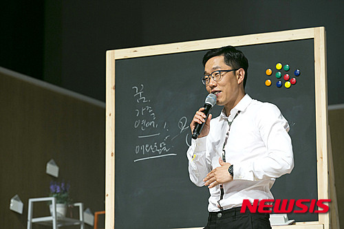 18일 강릉 원주대에서 진행된 JTBC '톡투유-걱정 말아요 그대' 녹화에서도 김제동의 고집스런 언사는 계속됐다.