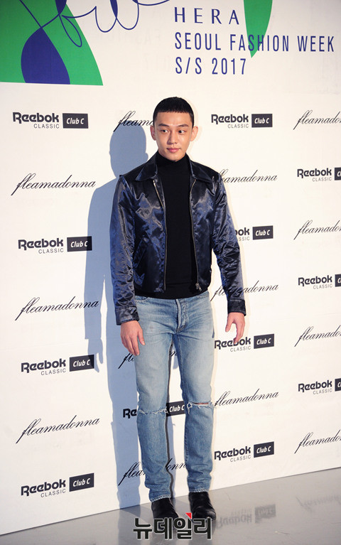 배우 유아인이 21일 오전 서울 동대문디자인플라자(DDP)에서 열린 '2017 S/S 헤라 서울패션위크(HERA Seoul Fashion Week) '프리마돈나(FLEAMADONNA)' 런웨이 행사에 참석해 포토타임을 갖고 있다.