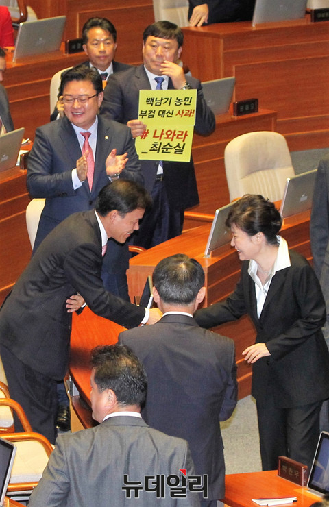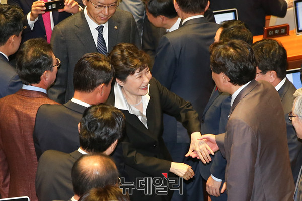 박근혜 대통령이 24일 오전 국회 본회의장에서 2017년도 예산안 시정연설을 마치고 본회의장을 나서고 있다.