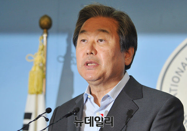 새누리당 김무성 전 대표가 24일 오후 국회 정론관에서 개헌관련 기자회견을 갖고 있다.