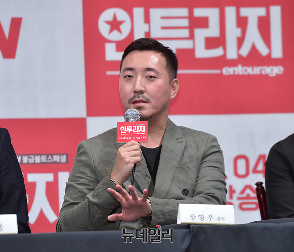 장영우 감독이 25일 오후 서울 강남구 임피리얼팰리스 호텔에서 열린 tvN 스페셜 드라마 '안투라지(연출 장영우, 극본 서재원 권소라)' 제작보고회에서 질문에 답하고 있다.
