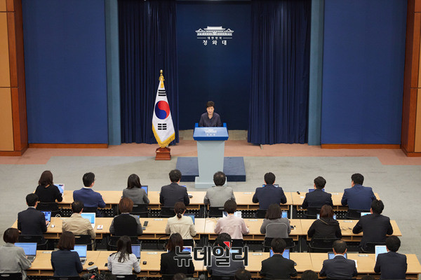 박근혜 대통령이 25일 오후 청와대 춘추관에서 최순실(최서원으로 개명·60)씨의 의혹과 관련해 입장 발표하고 "이유 여하를 막론하고 국민 여러분께 깊이 사과드린다"고 밝혔다. (사진=청와대)
