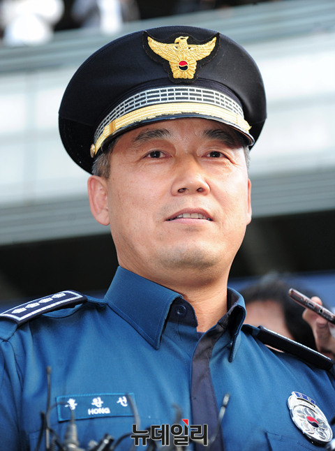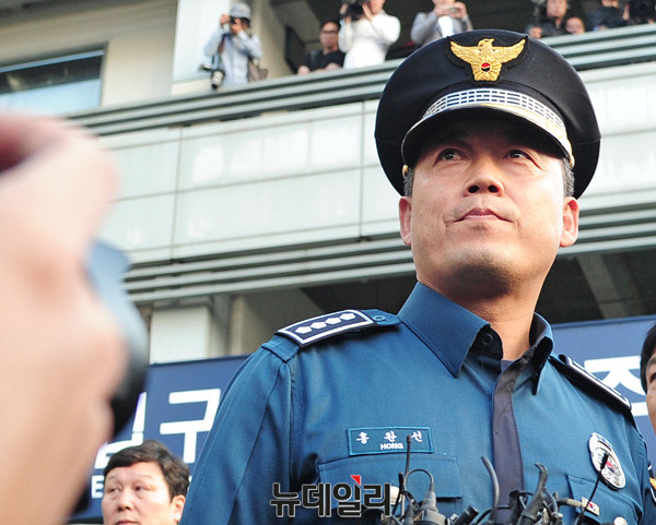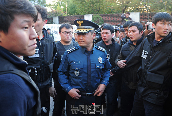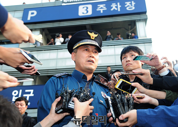 홍완선 종로경찰서장이 25일 오후 서울대병원 장례식장 앞에서 백남기씨 부검영장 집행과 관련해 백남기대책위 관계자와 협의 내용을 브리핑하고 있다.