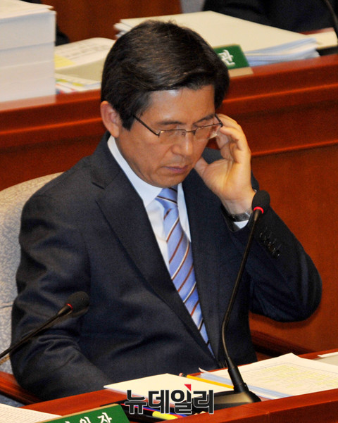 황교안 국무총리가 28일 오전 국회에서 열린 예산결산특별위원회 전체회의에 참석해 있다.