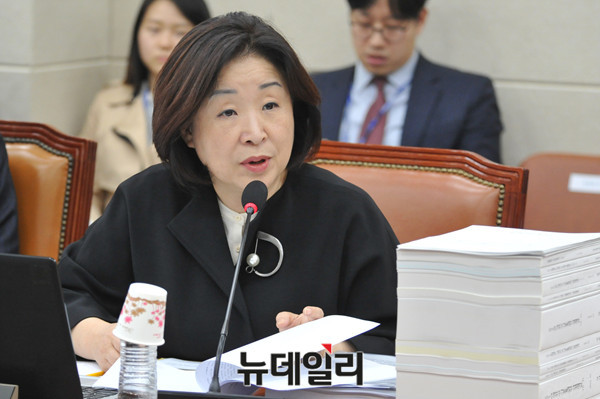 정의당 심상정 의원이 28일 오후 국회에서 열린 정무위원회 전체회의에서 발언을 하고 있다.