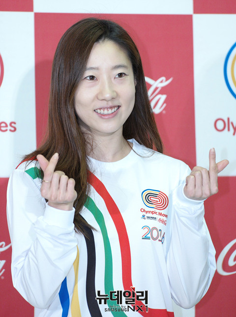 - ▲ 서정화 선수가 평창올림픽 응원 메세지를 적고 있다 ⓒ 뉴데일리 공준표