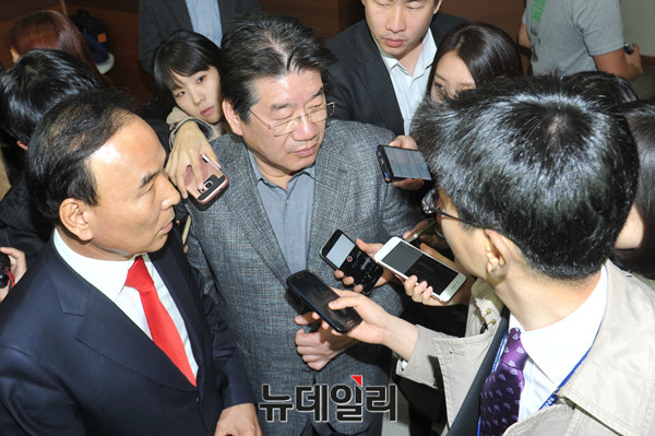 새누리당 강석호 최고위원이 30일 오후 서울 여의도 새누리당사에서 열린 최고위원회의에서 대통령에게 거국중립내각 구성을 건의키로 결정하고 기자들의 질문에 답하고 있다.