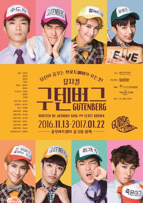 독특한 구조의 2인극 뮤지컬 '구텐버그'가 2년 만에 충무아트센터 중극장 블랙에서 공연된다.11월 13일 개막하는 '구텐버그'는 '버드'와 '더그'라는 두 신인 뮤지컬 작곡가와 작가의 브로드웨이 진출을 향한 열정과 꿈을 그린다. 문맹마을 슐리머에서 인쇄기를 만들어 활자를 보급하고자 하는 와인 양조업자 구텐버그의 이야기를 극중극으로 펼쳐낸다.'버드'와 '더그'는 자신들이 쓴 뮤지컬 '구텐버그'를 브로드웨이 무대에 올려줄 프로듀서를 찾기 위해 임시로 빌린 극장에 유명 프로듀서들을 초대하고, 자신들이 직접 노래하고 연기하며 리딩 공연 형식으로 작품을 선보인다.송한샘 쇼노트 이사는 "실제 원작자 스콧 브라운과 앤서니 킹이 2005년 업라이트 시티즌 브리게이트 시어터에서 45분짜리 리딩형식으로 발표한 작품으로 진정성이 고스란히 묻어있다"며 "새로운 캐스팅으로 돌아온 '구텐버그'에 많은 관심과 기대를 가져달라"고 말했다.'구텐버그'는 120분이 넘는 시간 동안 단 두 명의 배우가 한 대의 피아노와 함께 최소화된 세트, 소품으로 20여 명이 넘는 등장인물을 연기하며 극을 이끌어 나간다. 이들이 상황에 따라 각 역할의 이름이 적힌 모자를 번갈아 쓰면 아기, 의사, 여인, 수도사, 쥐 등의 캐릭터로 순식간에 변한다.그렇기에 안정된 노래 실력과 연기력뿐만 아니라 공연에 대한 내공이 있어야만 도전이 가능한 작품이다. 이번 시즌에서 '버드' 역은 김신의와 조형균이 출연하며, '더그' 역에는 정문성과 정동화가 캐스팅됐다.