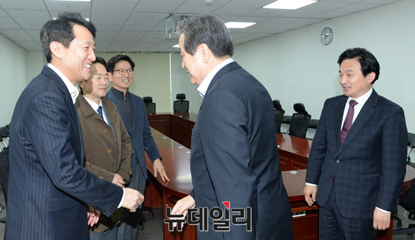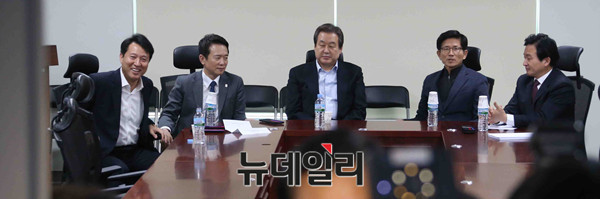 새누리당 김무성 전 대표, 오세훈 전 서울시장, 남경필 경기도지사, 김문수 전 경기도지사, 원희룡 제주도지사 등 대선후보로 거론되는 5인이 1일 오후 국회의원회관에서 최순실게이트 관련 수습대책을 논의하기 위해 비공개로 만나 이야기를 나누고 있다.