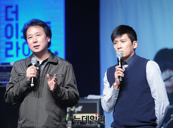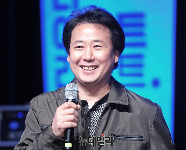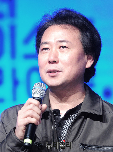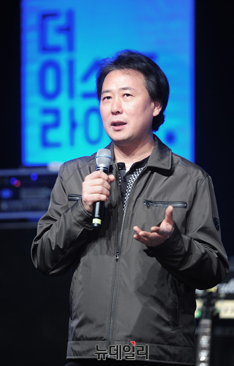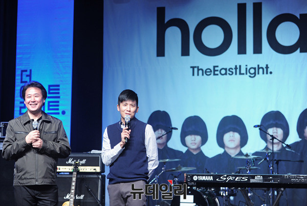 프로듀서 김창환이 3일 오후 서울 강남구 일지아트홀에서 열린 '더 이스트라이트(The EastLight)' 데뷔 첫 싱글 '홀라(Holla)' 발매 기념 쇼케이스에 참석해 질문에 답하고 있다.