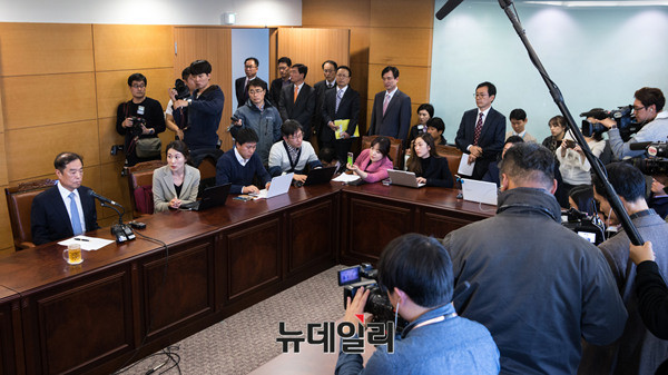 김병준 국무총리 후보자가 3일 오후 서울 종로구 금융감독원 연수원에서 기자회견을 열고 "국무총리 후보지명을 받는다"고 밝히며 "책임과 소명을 다하지 못하는 경우 결코 자리에 연연하지 않겠다"고 했다.