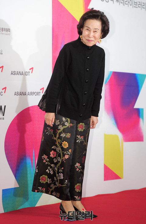 아시아나국제단편영화제 이사장을 맡은 원로배우 손숙이 3일 오후 광화문 씨네큐브에서 열린 '제14회 아시아나국제단편영화제' 개막식에 참석해 포토타임을 갖고 있다.