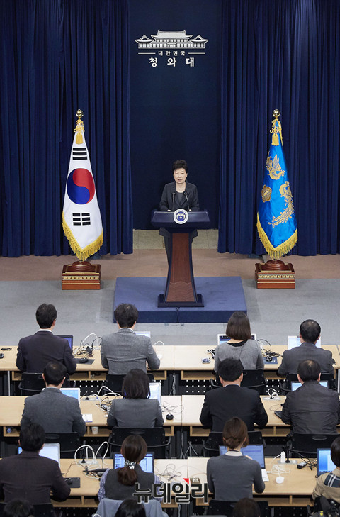 박근혜 대통령이 4일 오전 청와대 춘추관 기자회견장에서 최순실게이트 관련 대국민 담화문을 발표하고 있다. 다음은 담화문 전문이다.(사진=청와대)