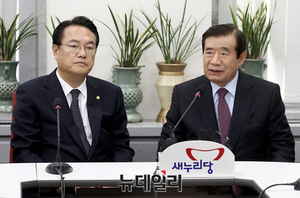 [포토] 새누리당 정진석 원내대표 찾은 신임 한광옥 대통령 비서실장