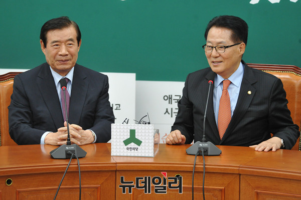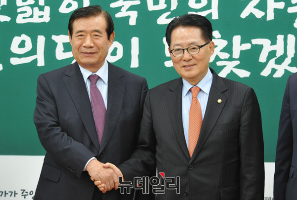 신임 한광옥 대통령 비서실장이 4일 오후 국회 국민의당 박지원 비상대책위원장을 찾아 인사를 나누고 있다.