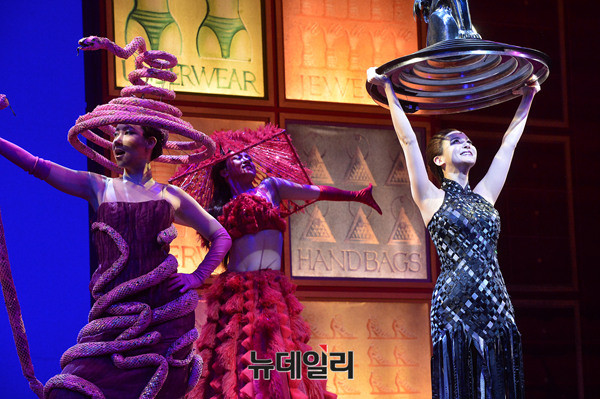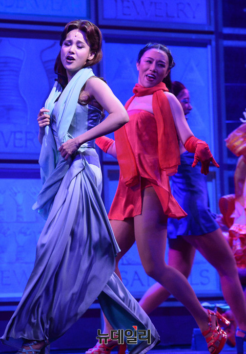 뮤지컬 아이다에서 암네리스 역을 맡은 배우 아이비가 4일 오후 서울 송파구 샤롯데씨어터에서 열린 뮤지컬 '아이다(AIDA)' 프레스콜에서 하이라이트 장면을 시연하고 있다. 아이비는 "철부지 공주에서 위엄 있는 여왕으로 성장해가는 암네리스를 관객들이 공감할 수 있는 연기를 보여드리고 싶다"며 각오를 밝혔다.