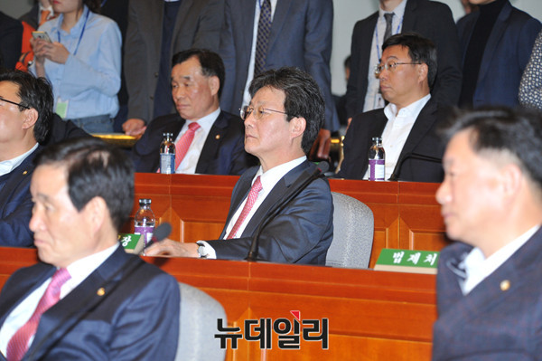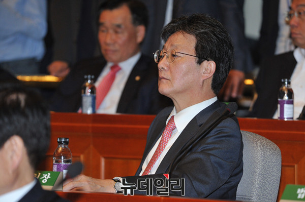 새누리당 유승민 의원이 4일 오후 국회에서 열린 새누리당 의원총회에서 참석해 자리를 지키고 있다.