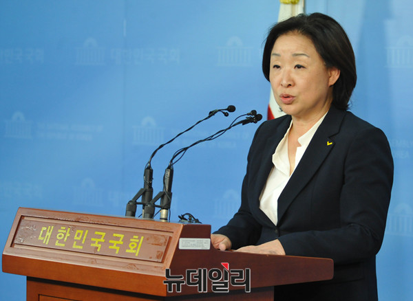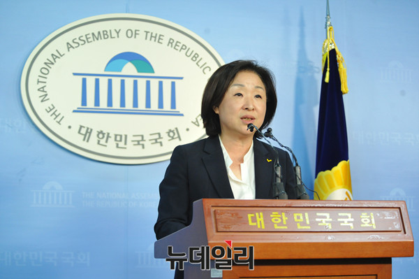 심상정 정의당 대표가 4일 오전 국회 정론관에서 박근혜 대통령 대국민담화문과 관련해 기자회견을 갖고 있다.