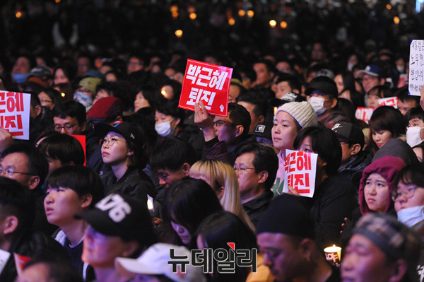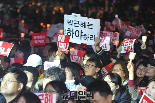 내려와라 박근혜 2차 범국민행동 문화제가 5일 오후 서울 종로구 광화문광장에서 열린 가운데 시위참가자들이 박근혜 대통령을 규탄하고 있다.