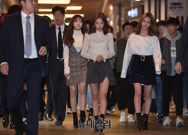 싸이닉 전속모델 걸스데이(소진, 유라, 민아, 혜리)가 6일 오후 서울 강남구 왓슨스 파르나스몰점에서 열린 싸이닉 '코코넛 보습라인' 론칭 기념 팬 사인회에 참석해 인사말을 하고 있다.