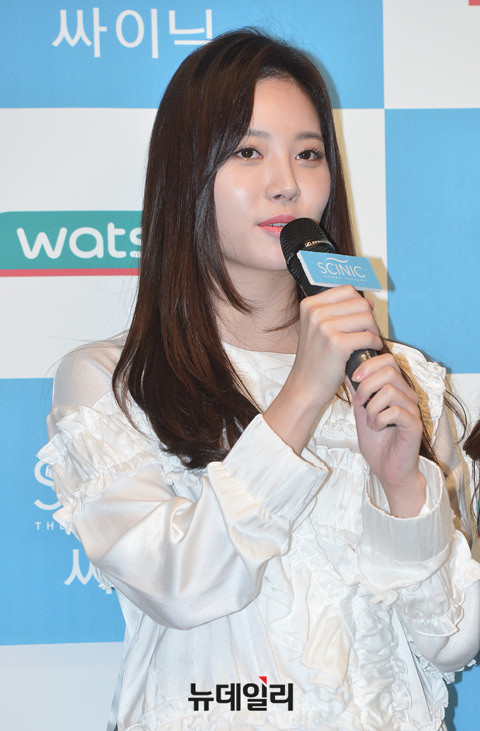 싸이닉 전속모델 걸스데이(소진, 유라, 민아, 혜리) 유라가 6일 오후 서울 강남구 왓슨스 파르나스몰점에서 열린 싸이닉 '코코넛 보습라인' 론칭 기념 팬 사인회에 참석해 인사말을 하고 있다.