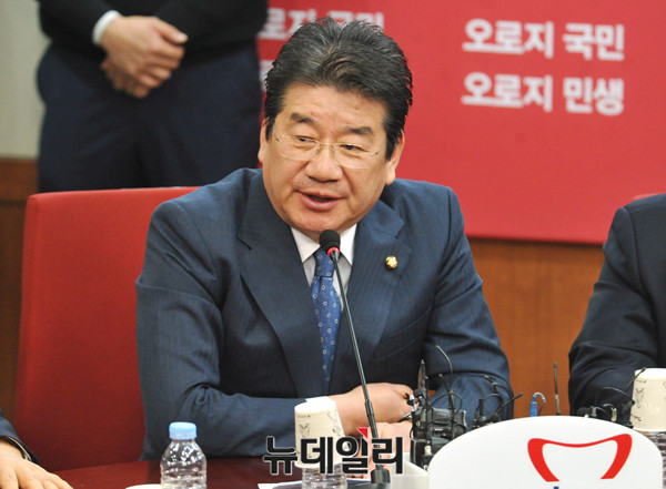 새누리당 강석호 최고위원이 7일 오전 서울 여의도 새누리당사에서 열린 최고위원회의에서 최고위원직 사퇴의사를 밝히고 있다.