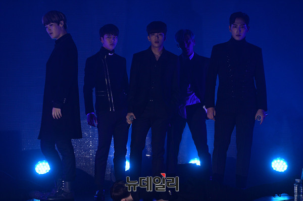 아이돌그룹 B.A.P(방용국, 힘찬, 대현, 영재, 종업, 젤로)가 7일 오후 서울 용산구 블루스퀘어에서 두 번째 정규앨범 'NOIR(느와르)' 쇼케이스를 갖고 가요계 컴백을 알렸다. 최근 공황장애 진단을 받은 리더 방용국은 쇼케이스에 불참했다.