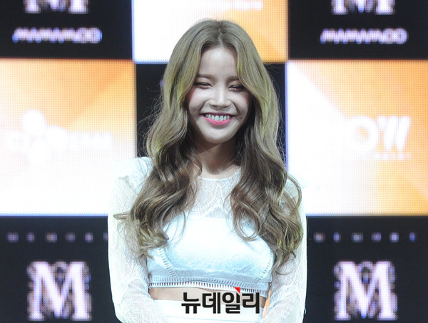 그룹 마마무 솔라가 7일 오후 서울 광진구 예스24라이브홀에서 열린 네 번째 미니앨범 '메모리(MEMORY)' 발매 기념 쇼케이스에 참석해 포즈를 취하고 있다.