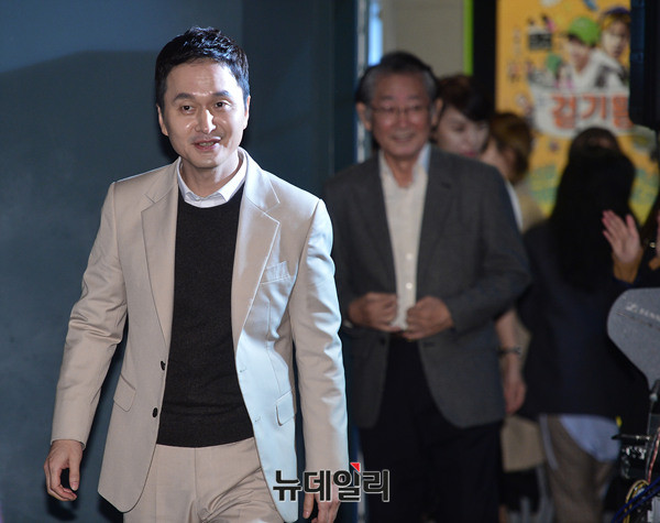 배우 장현성이 8일 오전 서울 압구정CGV에서 열린 영화 '커튼콜(감독 류훈)' 제작보고회에서 입장하고 있다. 사회는 방송인 박슬기가 맡았다.