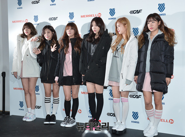걸그룹 에이핑크가 10일 오후 서울 강남구 드레스가든에서 열린 화승 브랜드 쇼케이스 '2017 S/S Re:Invent the HWASEUNG'에 앞서 포토타임을 갖고 있다.