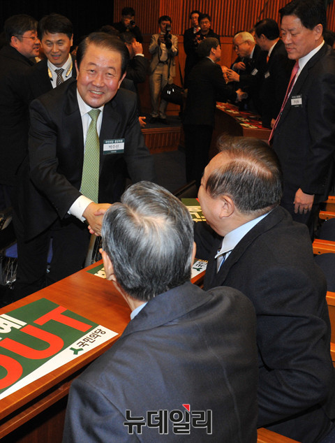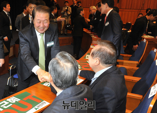 박지원 국민의당 비상대책위원장이 10일 오후 국회 헌정기념관에서 열린 '제1차 중앙위원회의'에 참석해 정대철 상임고문, 권노갑 상임고문과 대화를 나누고 있다.