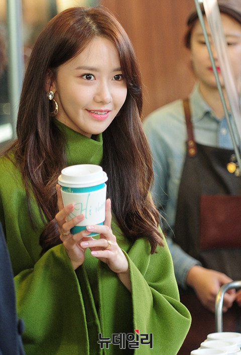 배우 임윤아(소녀시대 윤아)가 11일 오후 서울 강남구 투썸플레이스 신논현역점에서 열린 드라마 'THE K2'시청률 5% 돌파기념 공약 이행 행사에서 커피를 들어 보이고 있다.