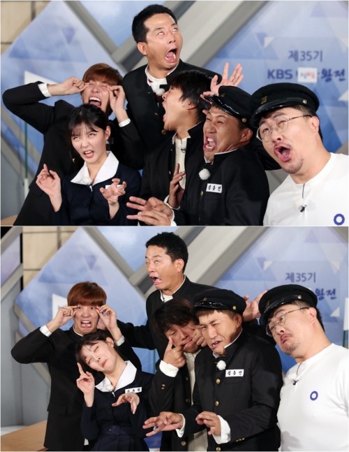 '1박2일' 멤버들과 김유정의 못생김이 묻어 나오는 촬영 비하인드 컷이 공개됐다.13일 오후 방송될 KBS 2TV '해피선데이-1박 2일 시즌3'(이하 '1박2일')는 낭랑 18세 배우 김유정과 함께 떠나는 좌충우돌 수학여행 '있잖아요~ 유정이에요' 특집이 펼쳐진다.그런 가운데 멤버들과 김유정의 코믹한 자태가 담긴 스틸이 공개돼 웃음을 유발한다. 여섯 명은 누가 더 못생겼는지 대결이라도 펼치는 듯, 각자 자신의 안면근육과 손을 사용해 사정없이 얼굴을 구기며 못생김을 내뿜고 있다.특히, 상큼함의 대명사 김유정은 망가짐을 불사한 코믹 표정을 짓고 있어 눈길을 끈다. 사진 찍기에 앞서 엽사가 특기라고 밝힌 그는 "나를 내려놓고 해야 되요"라더니 멤버들보다 더욱 강렬한 개그본능을 드러내며 오징어로 변모를 시도해 현장을 폭소로 물들였다는 후문이다.이날 김유정은 몸 속 깊숙한 데서 끓어오르는 승부욕을 바탕으로 달리고 구르며 혹독한 예능체험기를 치르는 한편, 멤버들을 쥐락펴락하는 카리스마와 예능감을 발산하며 모두를 웃음짓게 만들었다.김유정이 함께하는 수학여행은 13일 오후 방송되는 KBS2 '1박2일'을 통해 확인할 수 있다.['1박2일' 김유정, 사진=KBS 2TV]