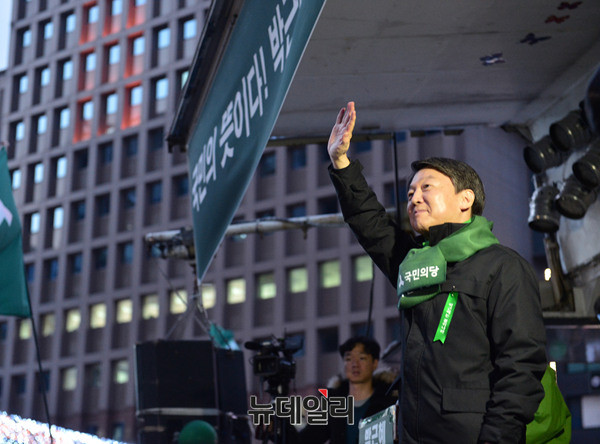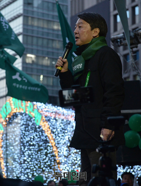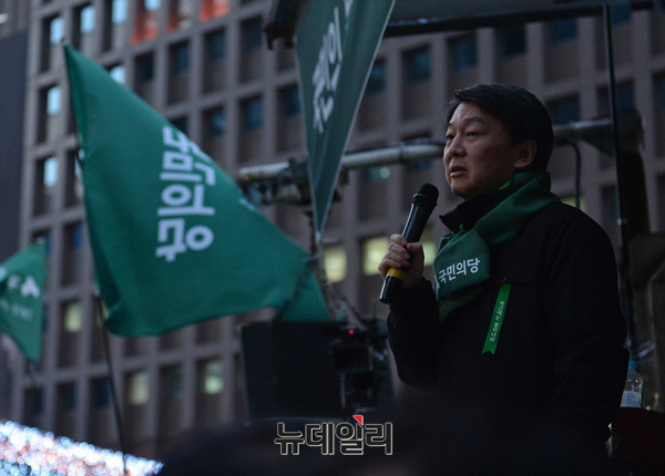 안철수 국민의당 전 대표가 12일 오후 청계천에서 열린 국민의당대국민보고대회에 참석해 모두 발언을 하고 있다.