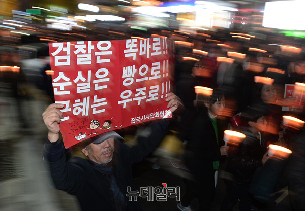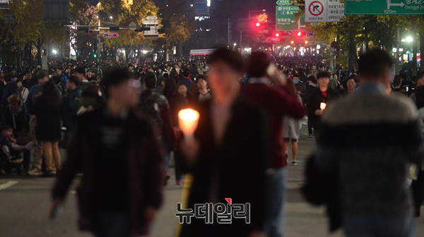 박근혜 대통령 퇴진을 요구하는 촛불집회가 12일 오후 광화문 일대에서 진행되고 있다. 주최 측은 이날 100만명 이상이 모일 것으로 예상했지만 경찰은 22만명으로 추산했다.