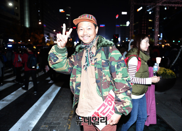 윈디시티 김반장이 12일 오후 광화문 광장에서 열린 박근혜 대통령 퇴진 촉구 집회가 열리고 있는 광장에 등장했다.