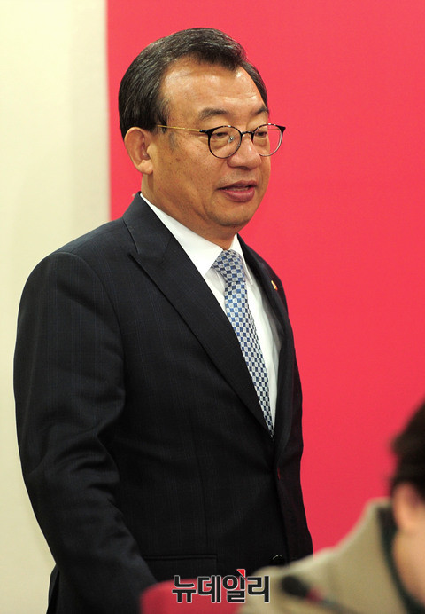 새누리당 이정현 대표가 14일 오전 서울 여의도 새누리당 당사에서 열린 최고위원회의에 입장하고 있다.