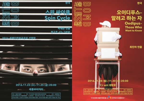 '스핀 싸이클'은 11월 23일~25일 세종문화회관M씨어터에서, 오이디푸스-알려고 하는 자'는 28일~30일 대학로 CJ아지트에서 공연된다.