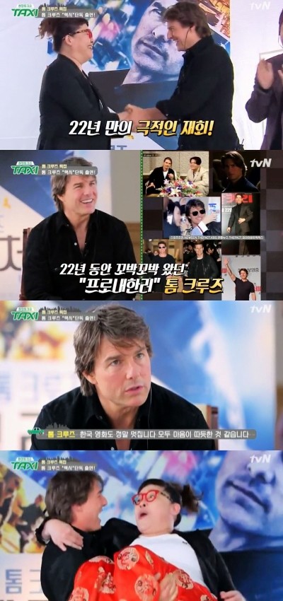 톰 크루즈는 바쁜 내한 일정 속에서도 한국 팬들에 대한 감사한 마음을 보답하기 위해 '택시' 출연을 결정했다. 특히, 그가 먼저 22년 만에 이영자를 다시 한번 안아 들어 보는 이들을 모두 깜짝 놀라게 했다.