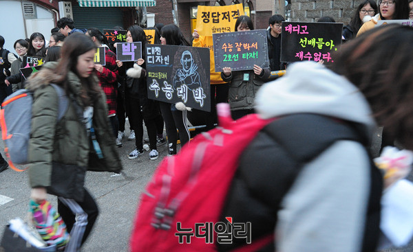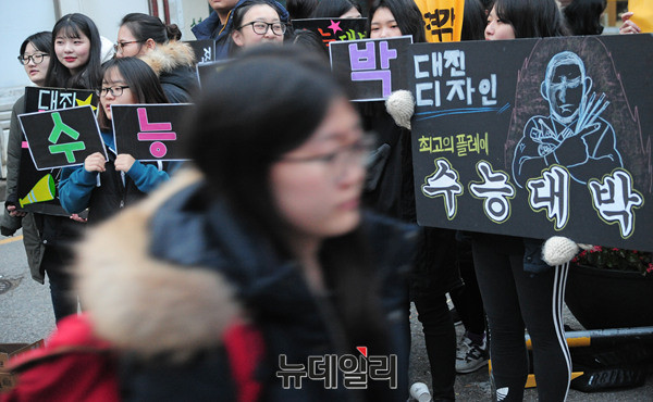 '2017학년도 대학수학능력시험' 수험생들이 17일 오전 서울 서초고등학교(제 18시험지구 11시험장)에 입장하고 있다.