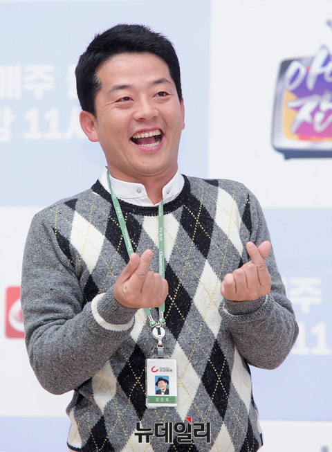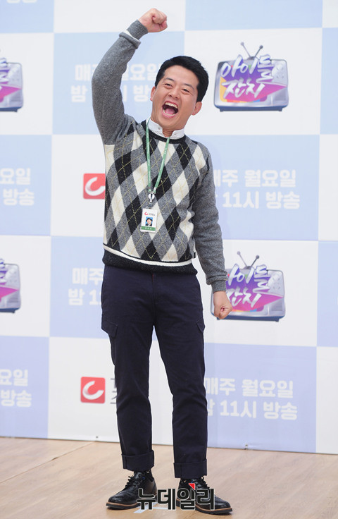 개그맨 김준호가 17일 오후 서울 마포구 디지털큐브에서 열린 '아이돌잔치' 제작발표회에 참석해 포토타임을 갖고 있다. 김준호는 방송국 제작부장 역을 맡아 아이돌의 진솔한 인터뷰를 이끌어 낼 예정이다. 이날 행사에는 박미선, 이봉원, 이특, 솔빈, 유타, 손 등이 참석했다.