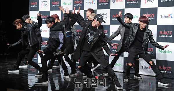 그룹 '업텐션(UP10TION : 진후, 선율, 쿤, 웨이, 샤오, 고결, 우신, 비토, 규진, 환희)'이 21일 오후 서울 강남구 일지아트홀에서 열린 다섯 번째 미니앨범 '버스트(BURST)' 발매 기념 쇼케이스에 참석해 포토타임을 갖고 있다.
