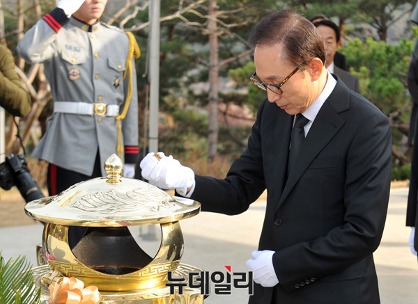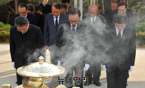 [포토] 故 김영삼 전 대통령 묘역 찾은 이명박 전 대통령