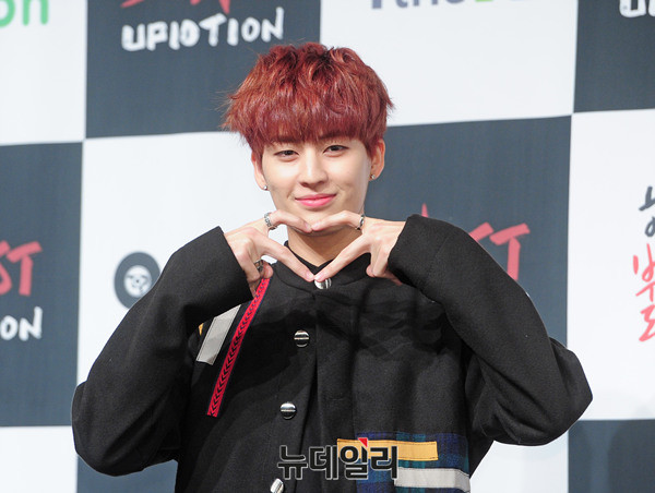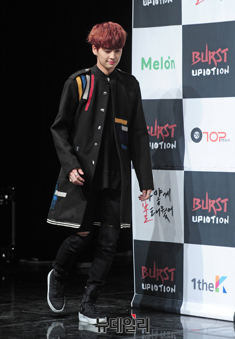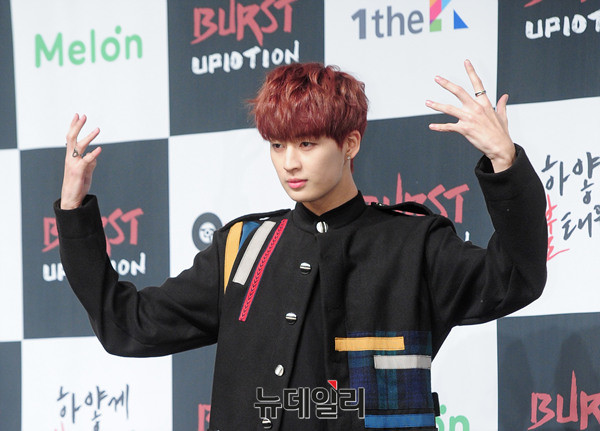 그룹 '업텐션(UP10TION : 진후, 선율, 쿤, 웨이, 샤오, 고결, 우신, 비토, 규진, 환희)'고결이21일 오후 서울 강남구 일지아트홀에서 열린 다섯 번째 미니앨범 '버스트(BURST)' 발매 기념 쇼케이스에 참석해 포토타임을 갖고 있다.