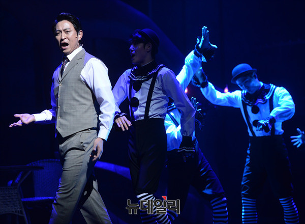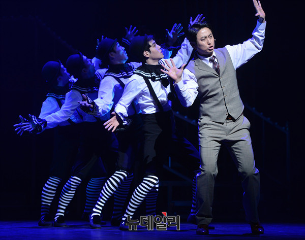 배우 서범석이 22일 오후 서울 강남구 광림아트센터 BBCH홀에서 열린 뮤지컬 '오!캐롤(프로듀서 박영석, 연출 한진섭, 음악감독 김성수)' 미디어콜에서 하이라이트 장면을 시연하고 있다.