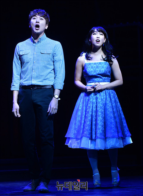배우 이유리, 성두섭이 22일 오후 서울 강남구 광림아트센터 BBCH홀에서 열린 뮤지컬 '오!캐롤(프로듀서 박영석, 연출 한진섭, 음악감독 김성수)' 미디어콜에서 하이라이트 장면을 시연하고 있다.